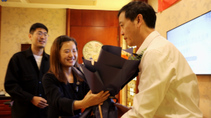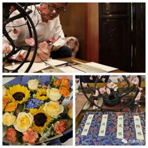 袁曦和陈捷分别向老师献花、诵读拜师贴和敬茶,导师则回赠予亲自编写的书籍,寄语弟子德艺双修。