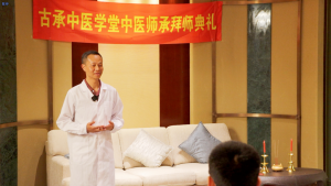 古承学堂校长刘勋亮先生说,师承方式在我国已有上千年历史,拜师仪式传达了时代对中医药文化的重视以及人们对医生的尊重。师承教育是培养造就中医人才的有效模式,是继承发展中医的有效方法。只有经过朝夕临诊,耳濡目染,口授心传的个性化指导,继承者方能逐步领会和迅速掌握中医精粹,少走弯路。丁育忠老师和邓力先生的拜师仪式也寓意着传提灯薪火,承仁心仁术,师生携手相伴,共同问道、求知、探理,推动中医事业生生不息,薪火永传。