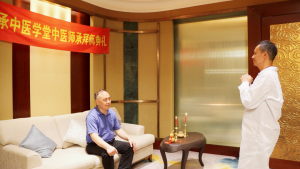 正所谓念念不忘,必有回响。在古承学堂刘校长的几番奔波沟通下,终于和丁育忠老师牵线结缘,丁主任一开始听完邓先生的情况后内心其实是婉拒的。“一开始我听了刘校长的介绍,并没打算收他,主要是年龄大了。”直到同邓力先生多次会晤面谈,考察了连续几个月的随行跟诊后,丁主任被邓力持之以恒的求学赤子之心和对中医推拿超高的领悟力所打动,最终答应将邓力收入门下,开启了一段良师佳徒的新篇章。
