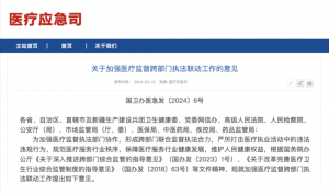 古承发现,国家卫健委网站3月13日消息,国家卫生健康委等10部门制定《关于加强医疗监督跨部门执法联动工作的意见》,提出跨部门联合监督执法合力,严厉打击医疗执业活动中的违法违规行为,包括严厉打击非法行医,严肃查处发布违法广告和有害信息的行为,严厉打击破坏公平就医秩序的行为等。